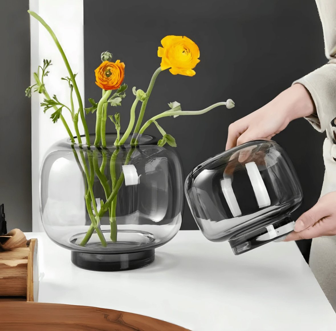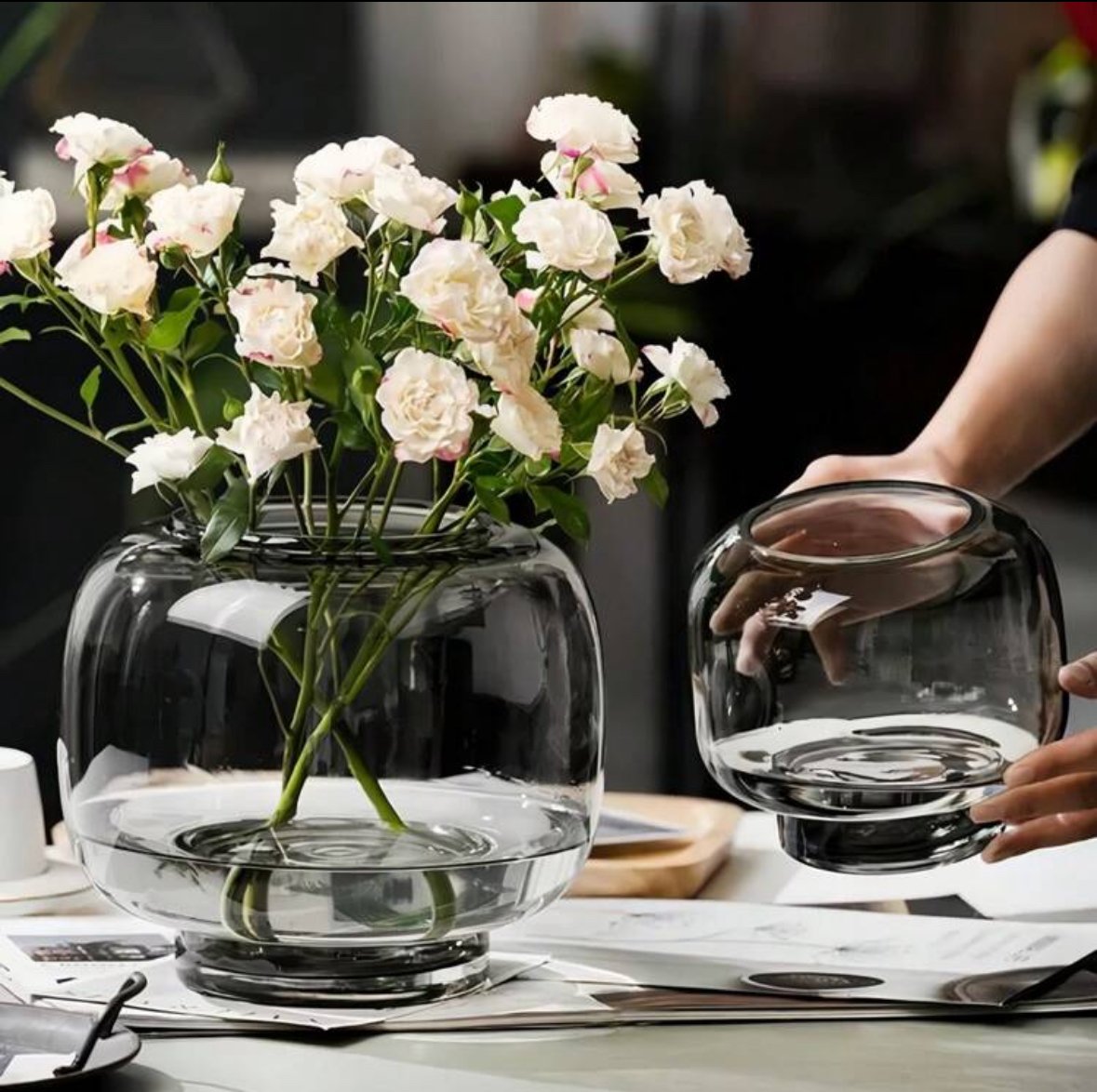 Nordic Style Design Glass Vase Glass Jar Shaped Round Hand Blown Flower Glass Vase